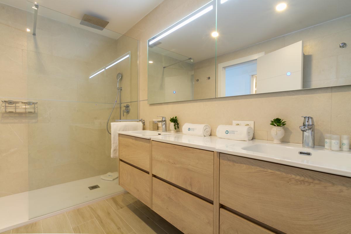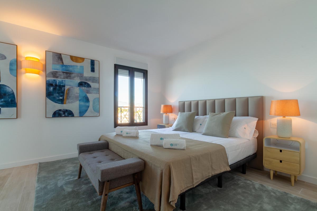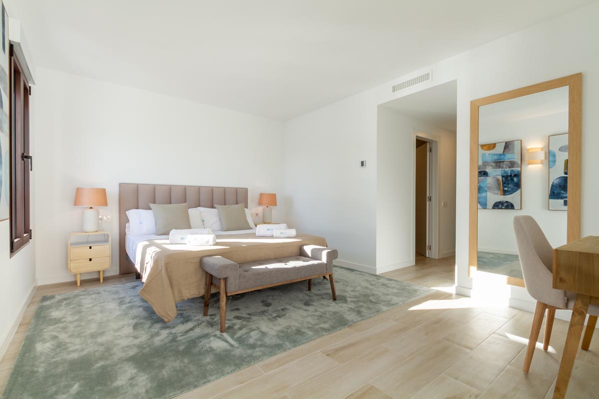 El dormitorio principal tiene una cama King Size. En la misma habitación hay un armario empotrado, caja fuerte con cerradura digital. Este dormitorio tiene baño en suite y un escritorio por si necesitas trabajar o conectarte online en forma privada.
