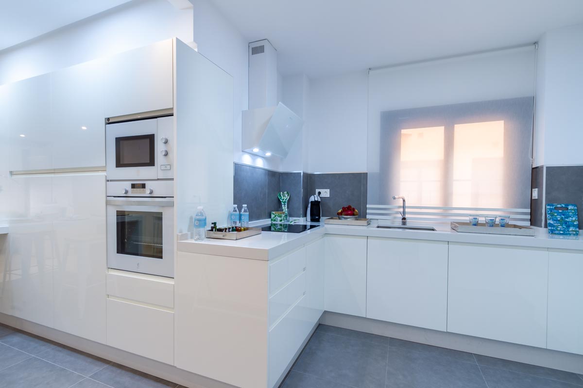 El apartamento moderno y amueblado está situado en el segundo piso y ofrece un acogedor comedor y sala de estar con una cocina integrada totalmente equipada con electrodomésticos de última generación.