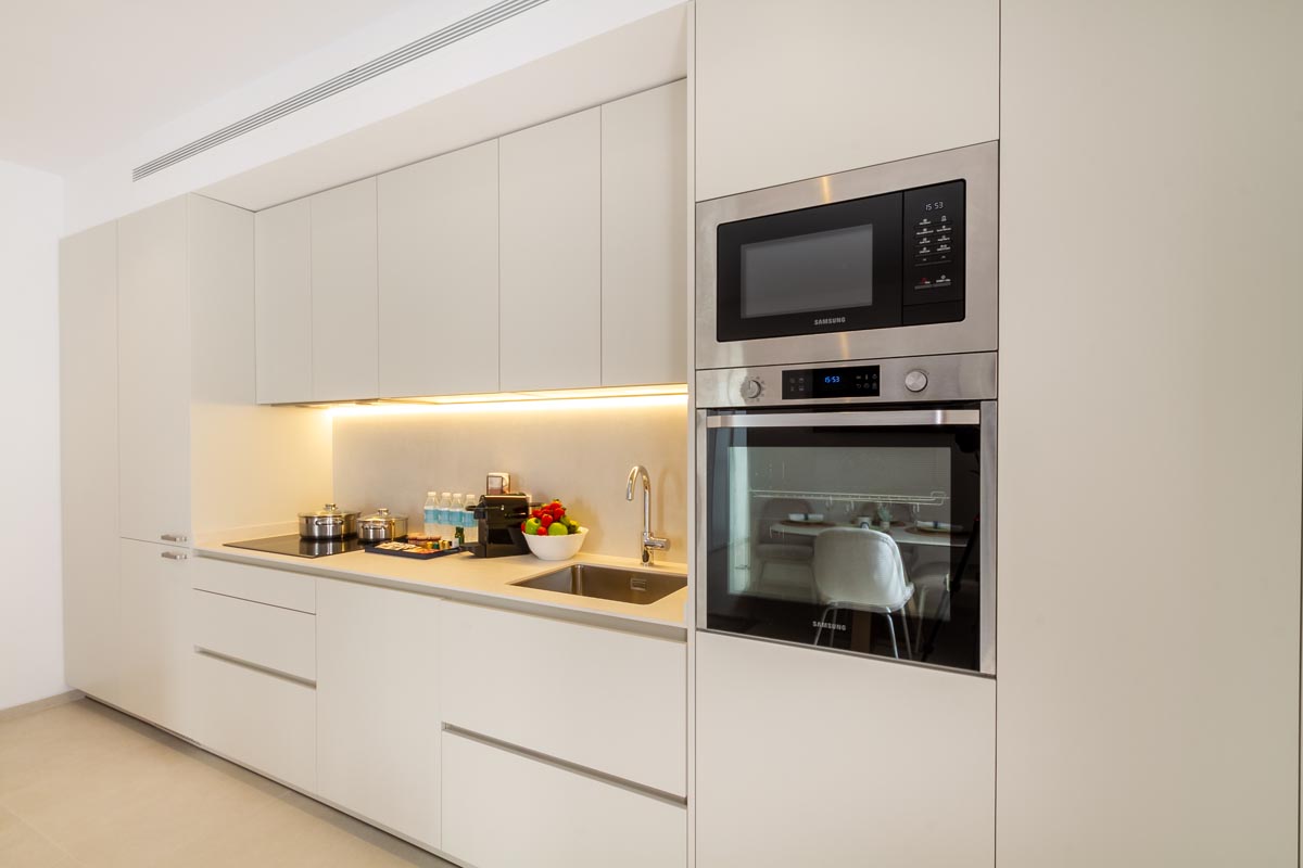 Este sofisticado apartamento, bellísimamente decorado, está ubicado en el segundo piso de Casa Córdoba. Cuenta con un agradable comedor y sala de estar, junto con una cocina integrada y completamente equipada con modernos electrodomésticos.
