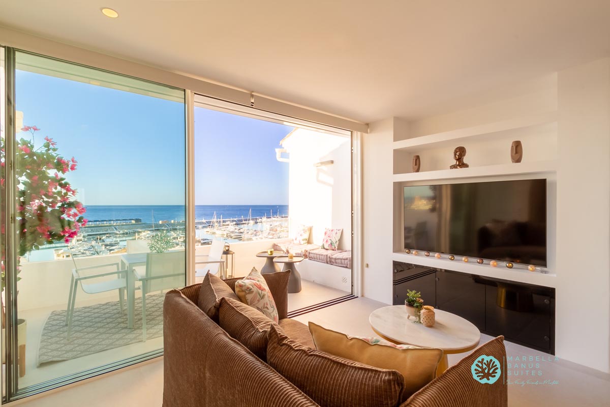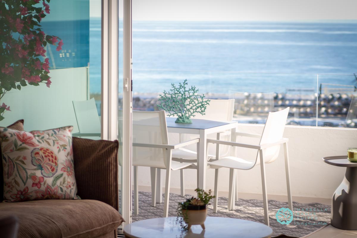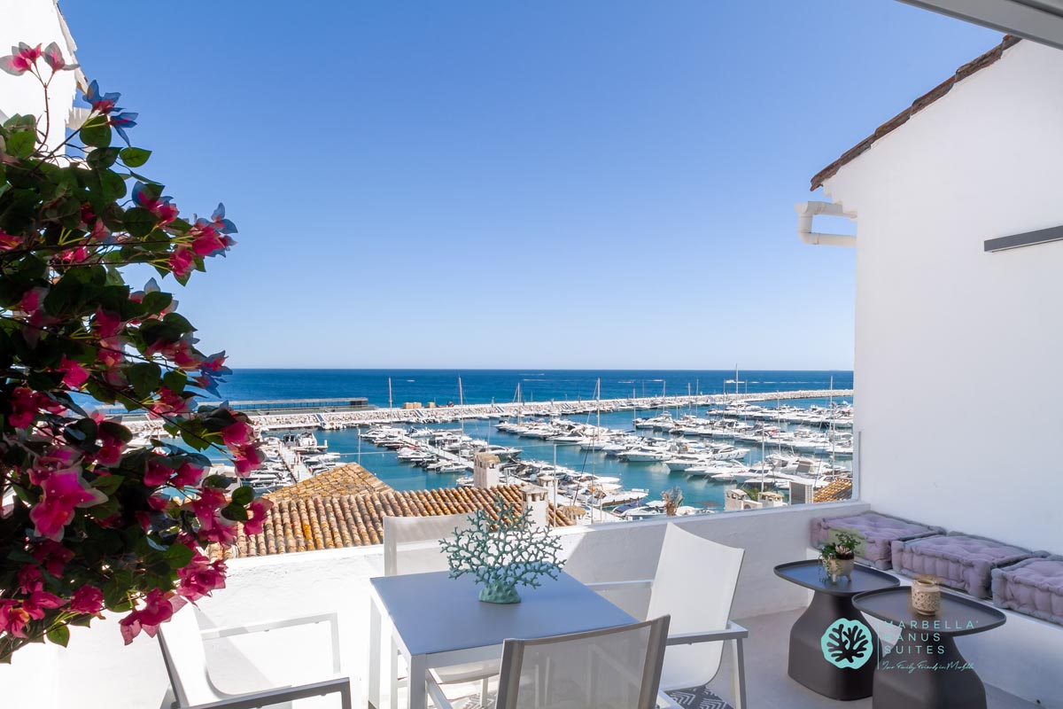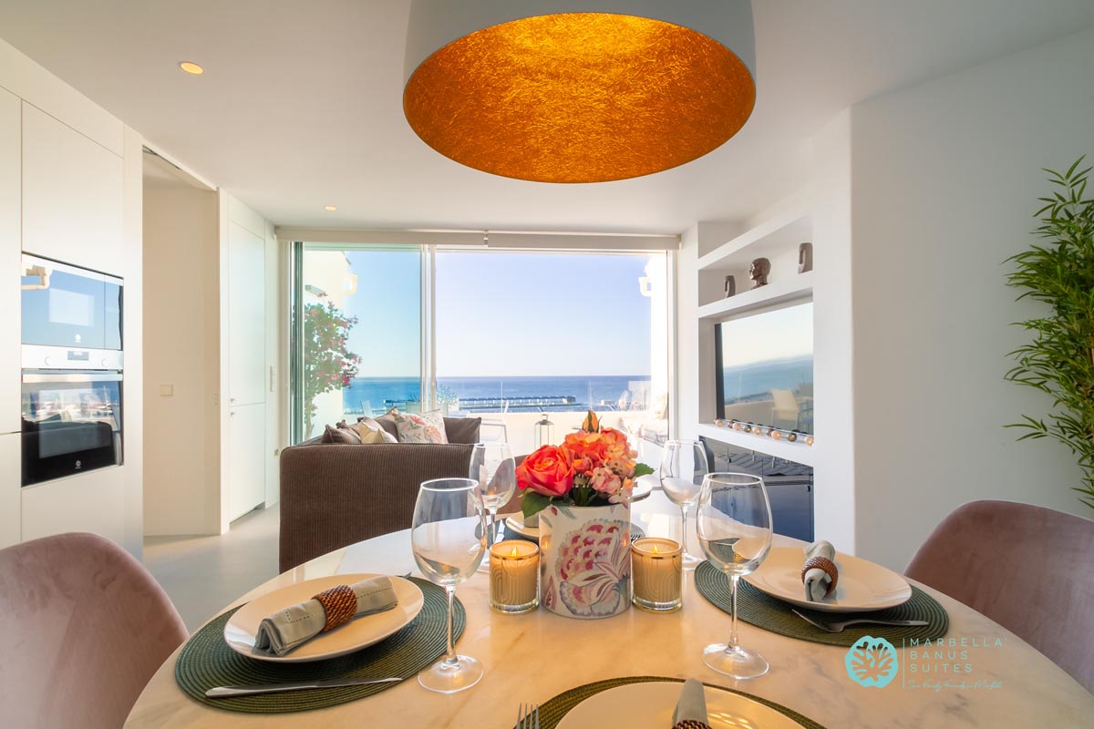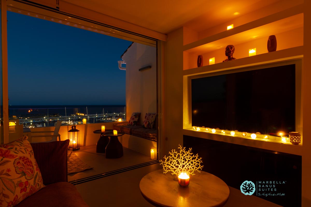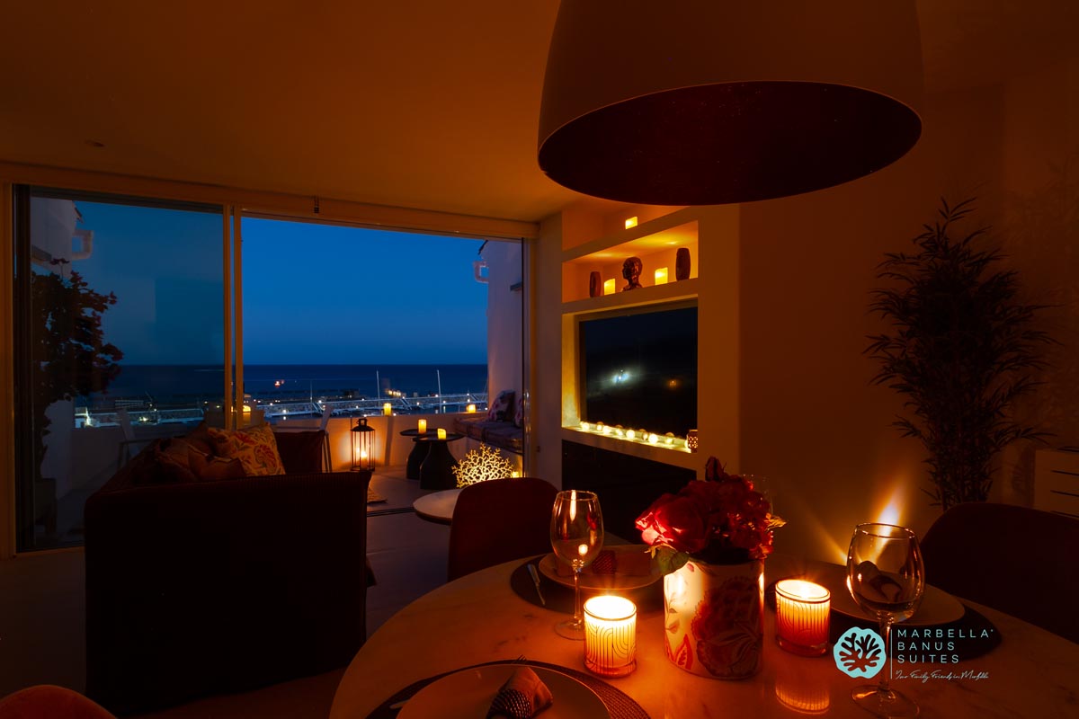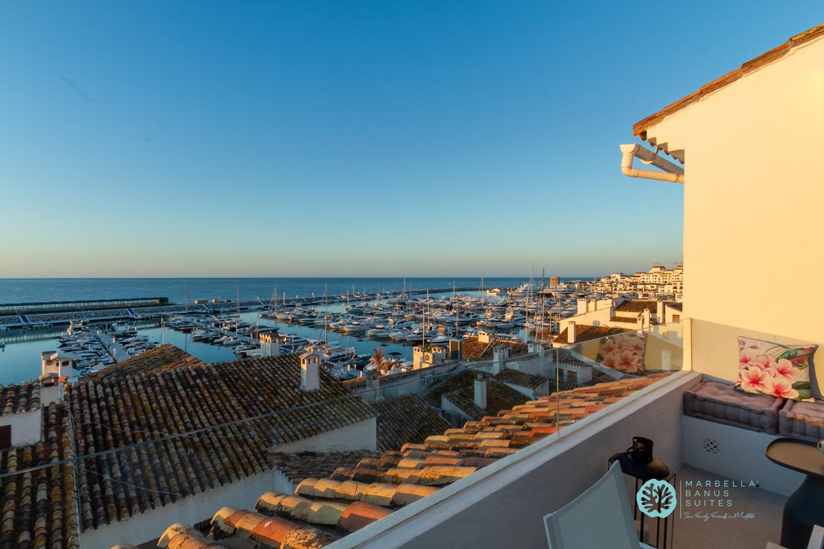 Desde la terraza exterior podrás disfrutar de las vistas directas al mar y a la marina, de los amaneceres y los fantásticos atardeceres multicolores de Marbella.