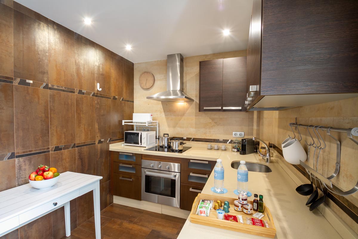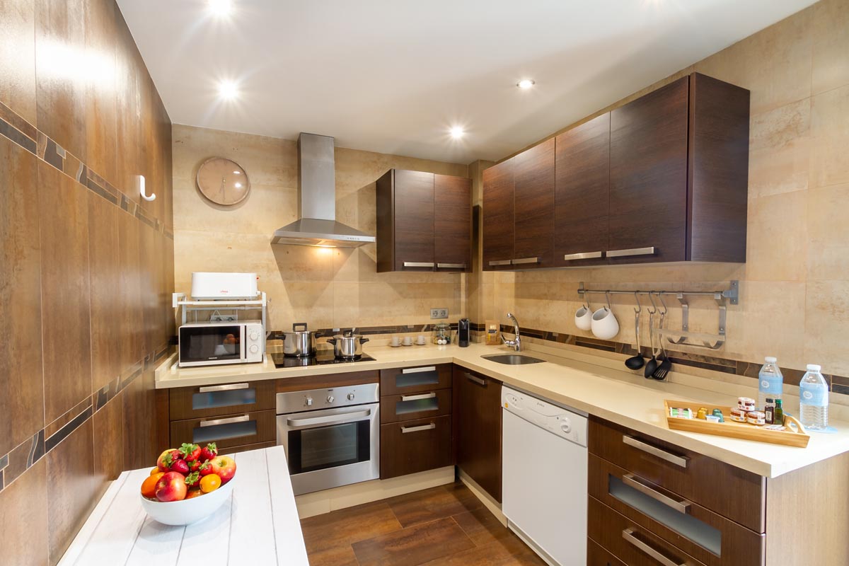 La cocina está totalmente equipada con electrodomésticos y utensilios suficientes.
