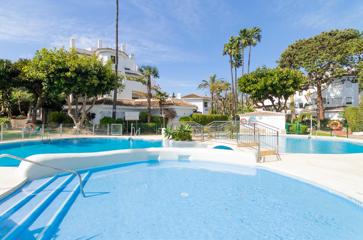 Maravillosa casa adosada de 3 dormitorios con una fantástica terraza exterior y varias piscinas, ubicada en un complejo residencial increíblemente verde y excelentemente ubicado: situada en Golden Beach, la propiedad cuenta con acceso directo a la playa.