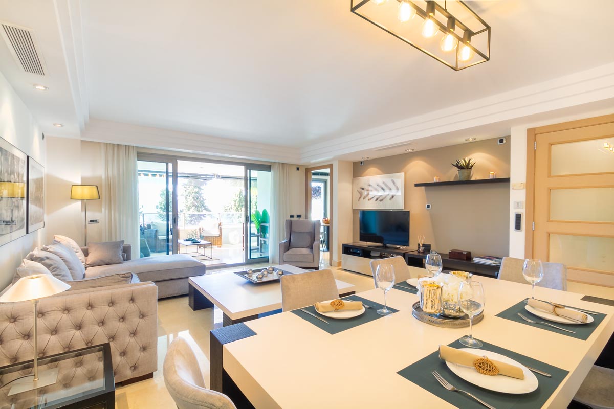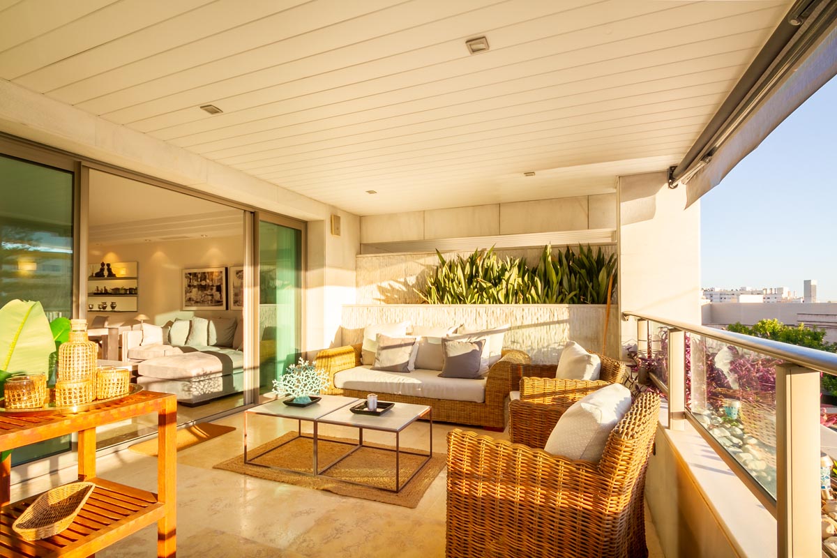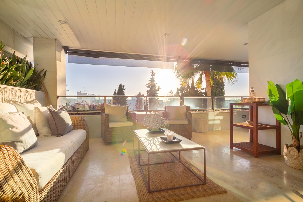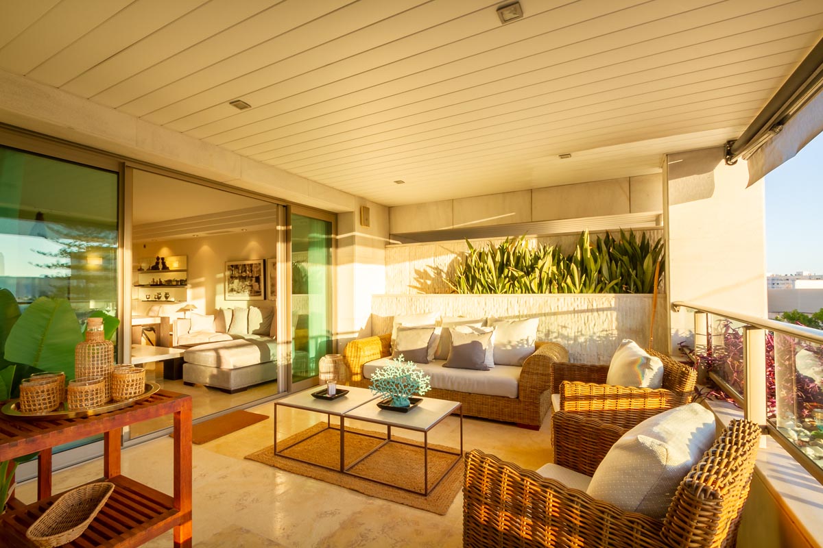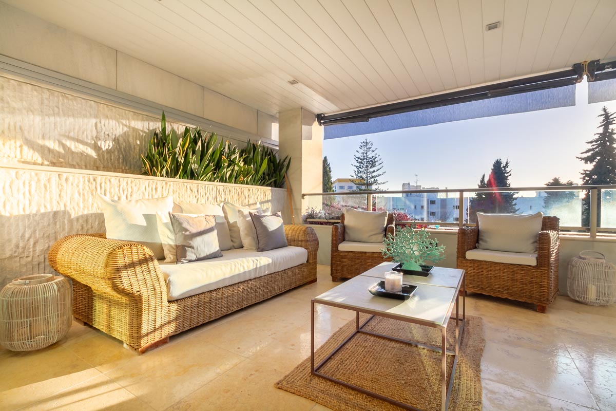 Exclusivo y luminoso apartamento de tres dormitorios y tres baños con una fantástica terraza exterior para disfrutar del verano.