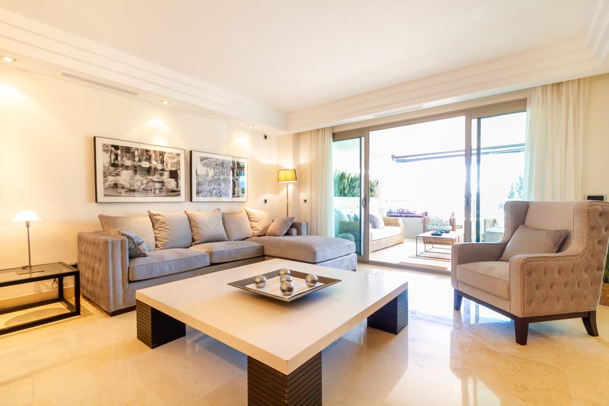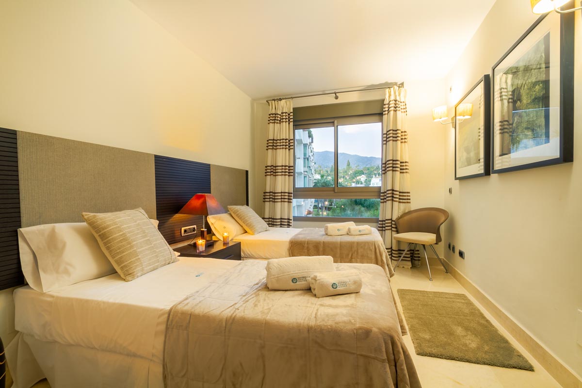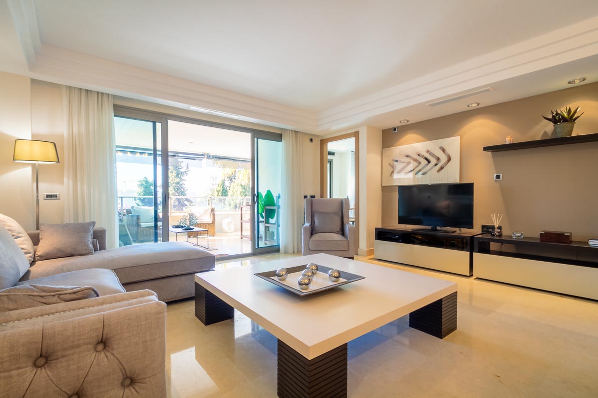 Jardines del Príncipe Golden Mile Suite Apartment es un Apto. de 2hab-3baños, ubicado en la más famosa zona de Marbella, La Milla de Oro
