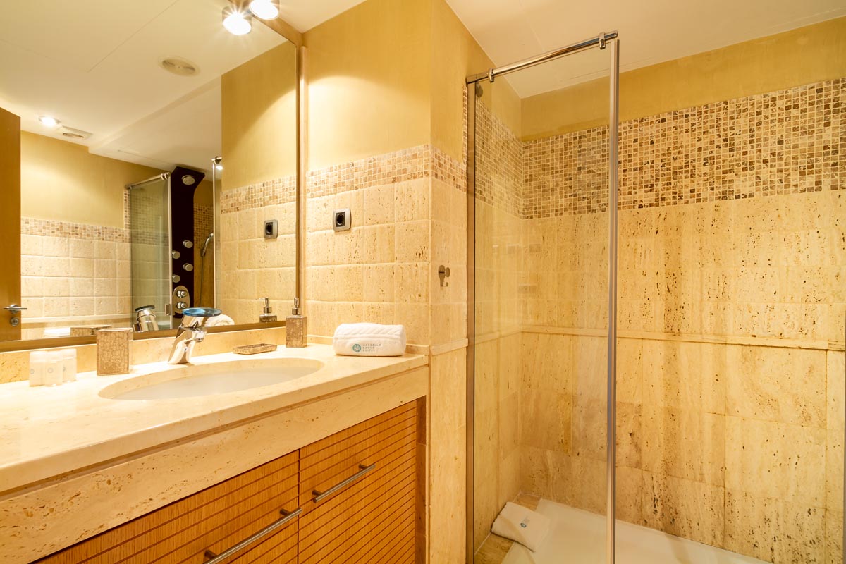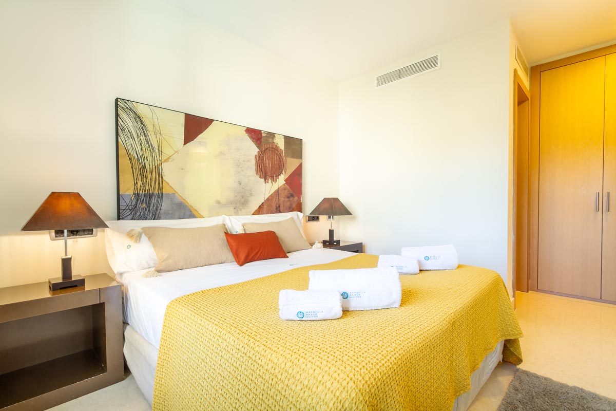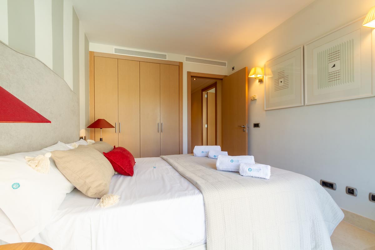 El dormitorio principal tiene una cama King Size (180 cm x 200 cm). En la misma habitación, hay un armario empotrado y una caja fuerte con cerradura digital. Esta habitación tiene su propio baño en suite. El segundo dormitorio tiene una cama doble y el tercero dos camas individuales. El segundo dormitorio también tiene su propio baño en suite y es muy luminoso.