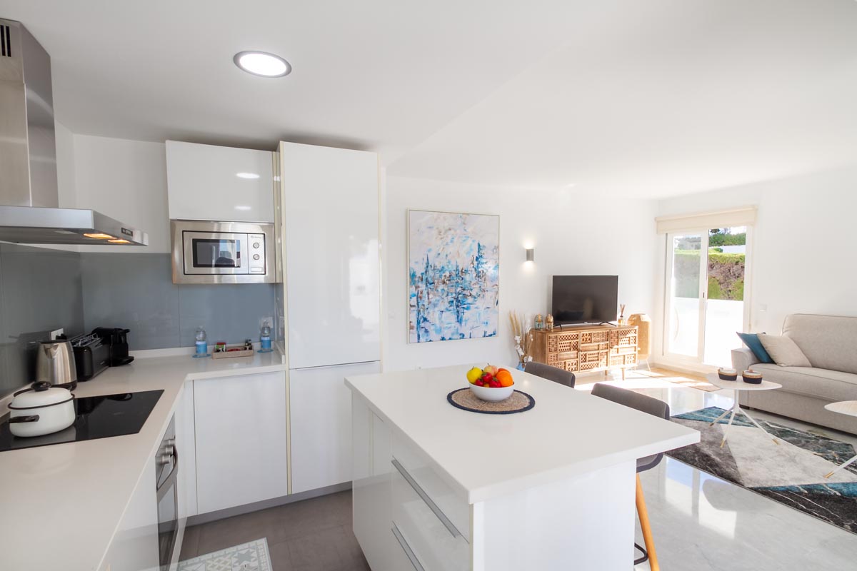 Este moderno apartamento está situado en la planta baja. La propiedad está elegantemente amueblada y cuenta con un acogedor comedor y sala de estar con una cocina totalmente equipada, completa con electrodomésticos de primera marca.