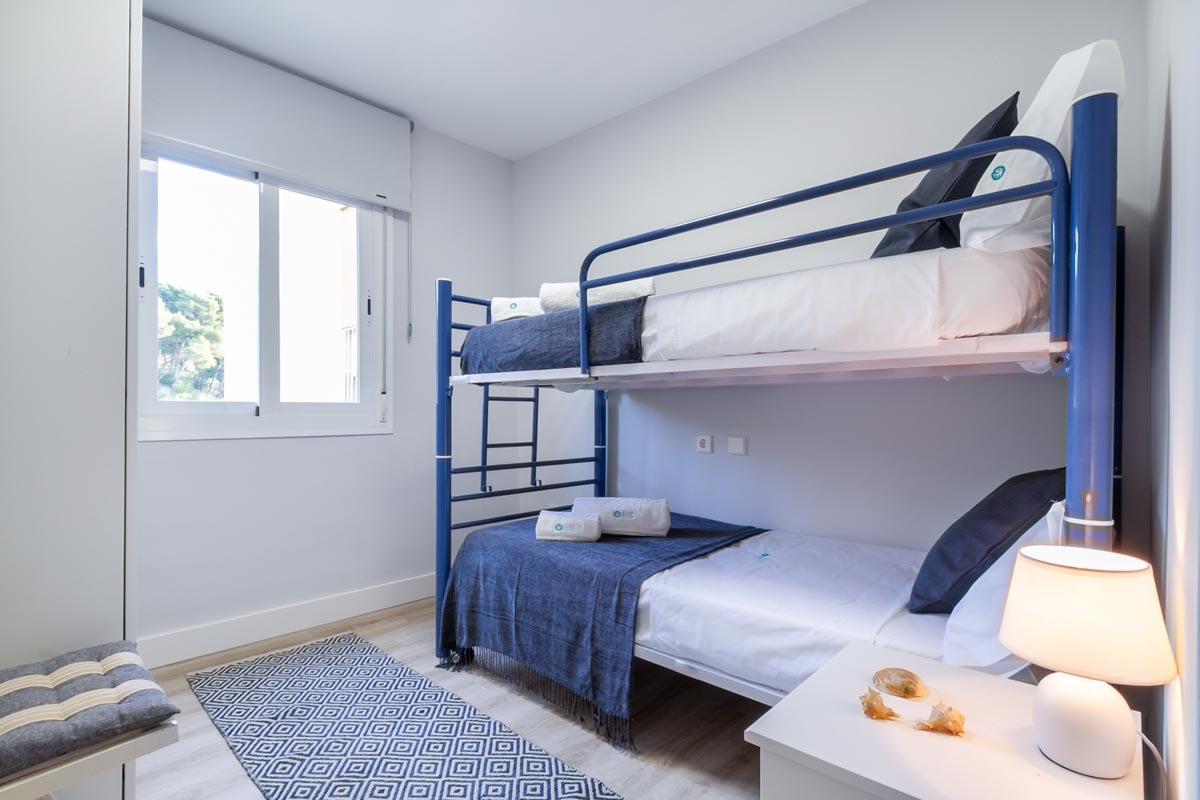 El dormitorio principal tiene una cama doble y las otras dos habitaciones tienen una cama y dos camas respectivamente.