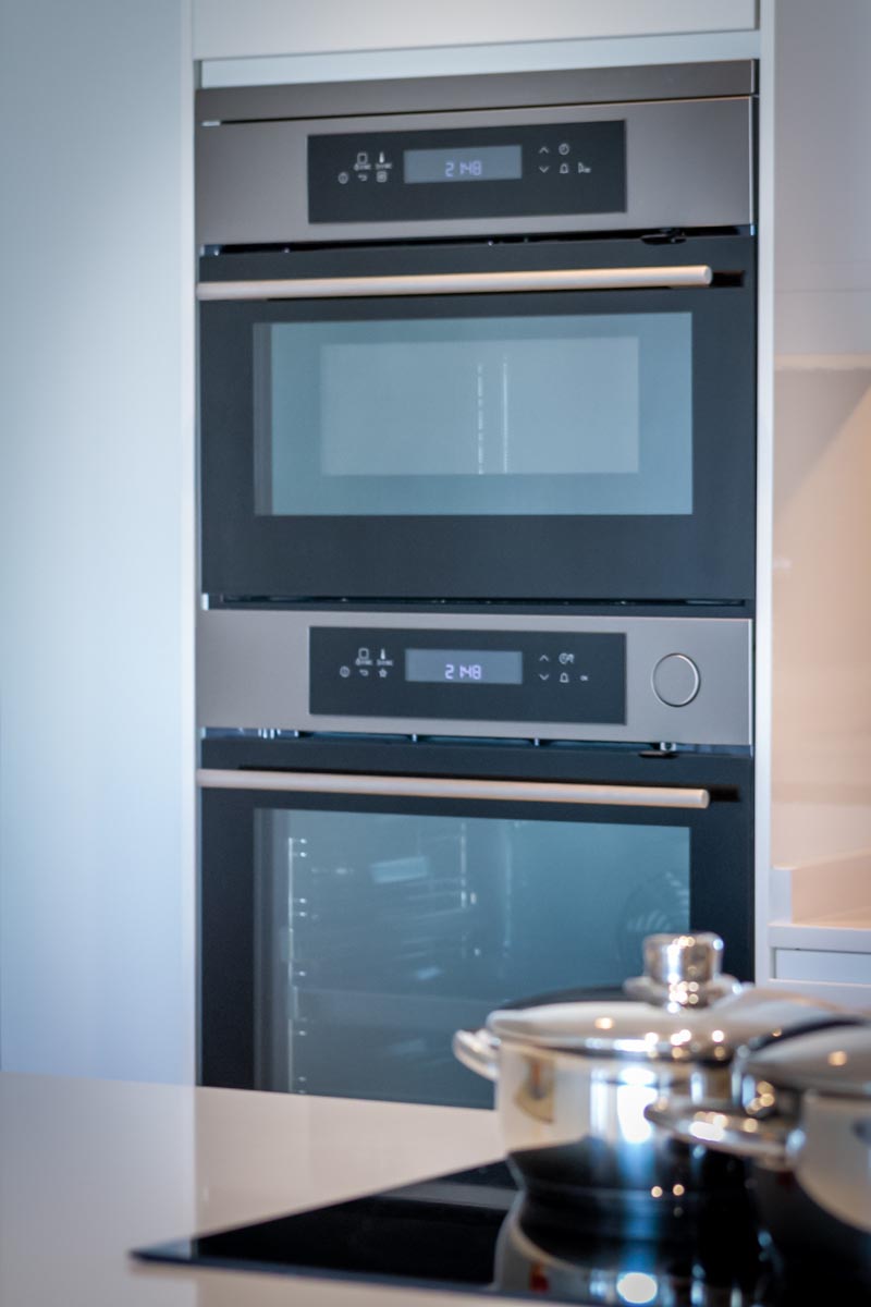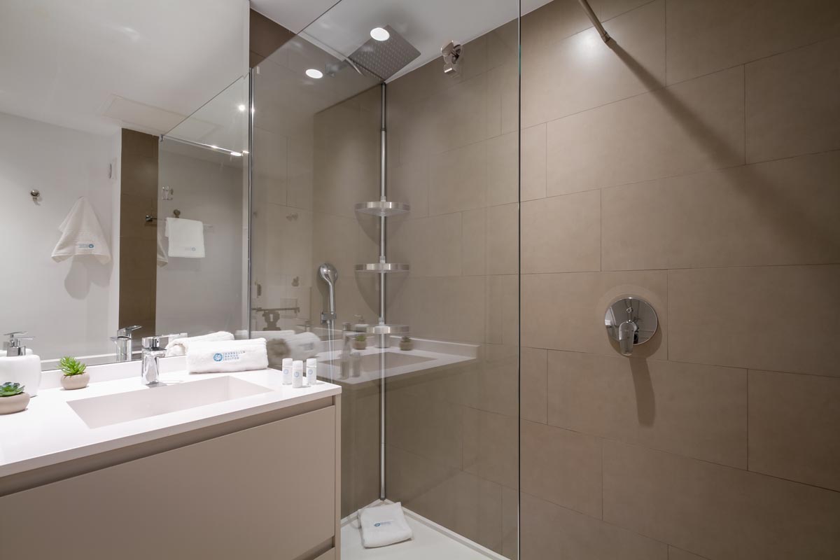 El dormitorio principal está equipado con una espaciosa cama King Size (180 cm x 200 cm), al igual que el segundo dormitorio. El tercer dormitorio cuenta con una cómoda cama Queen Size. Todos los colchones tienen un mínimo de 26 cm de altura, y encontrarás diferentes tipos de almohadas hipoalergénicas. Además, todas las habitaciones del apartamento están bañadas de luz natural, creando un ambiente cálido y acogedor.